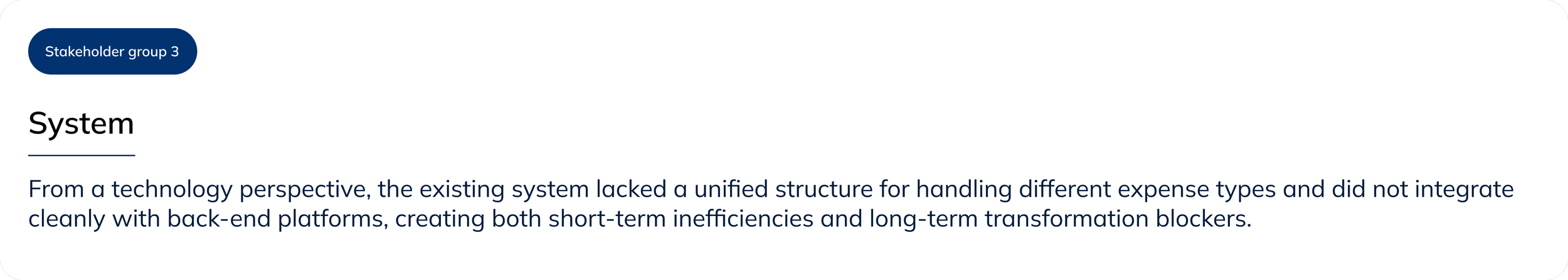 The existing expense submission process places too much responsibility on the user to interpret rules, complete calculations, and understand eligibility, while internal teams carry the burden of correcting and reconciling errors.