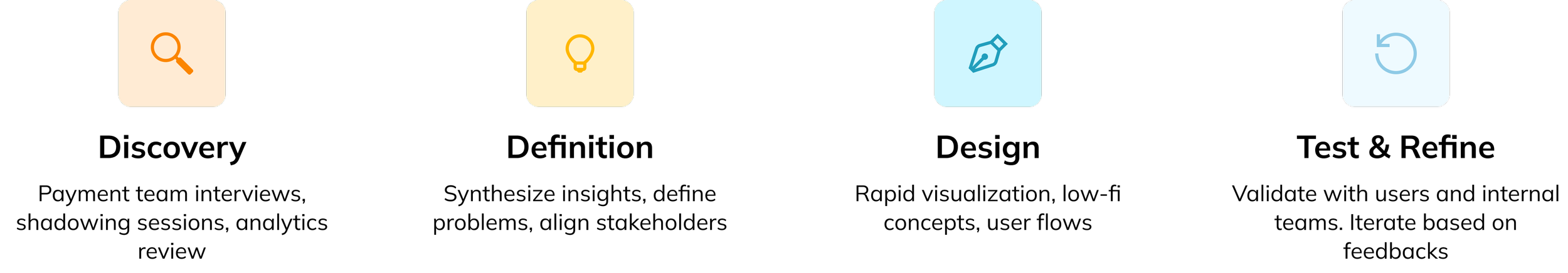 Although we had a general understanding of the existing problems, many details depended on backend workflows, data rules, and future integration plans. A research-led process ensured we captured these nuances, validated assumptions, and designed an experience that worked for both users and internal teams.
